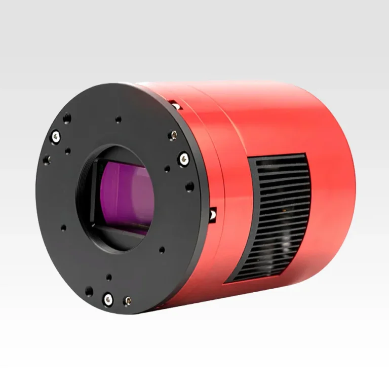 La cámara alcanza hasta 47 fps a resolución completa, lo que la hace versátil tanto para capturas rápidas de planetaria como para apilados en cielo profundo. Incluye memoria interna DDR3 de 512MB para transmisión de datos estable y rápida por USB 3.0, así como dos puertos USB 2.0 para conectar accesorios como ruedas de filtros o enfocadores electrónicos.