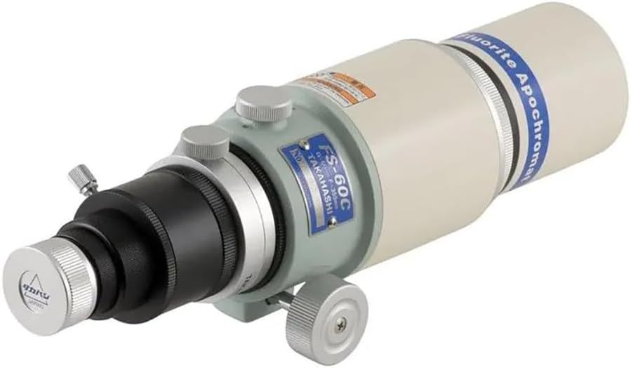 El Takahashi FS-60CP es un refractor apocromático doblete de fluorita, con apertura de 60 mm y focal de 355 mm (f/5.9), rediseñado con tubo sobredimensionado y enfocador robusto. Compatible con reductores FU 0.65x y correctores de campo, permite astroimagen ultra-rápida, gran campo y aplicación full frame, manteniendo la legendaria calidad óptica Takahashi y montaje Vixen estándar.